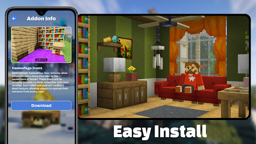 This mobile app is designed for Minecraft Pocket Edition enthusiasts who enjoy customizing their worlds with unique textures and modifications. It is particularly well-suited for players aged 10 and above who want a more personalized gaming experience without complex setups. Whether you're a casual builder or a dedicated modder, this Android app can help elevate your gameplay by introducing creative camouflage doors that enhance your environment.