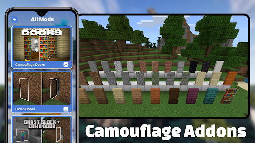 Choosing Camouflage Doors Mod for MCPE as your go-to Android app means opting for a tool that combines simplicity with powerful app features. The app is designed to deliver a seamless app experience, making it easy for users to access high-quality camouflage door textures and mods tailored for Minecraft Pocket Edition. Its intuitive interface ensures even new players can quickly take advantage of its capabilities, while veteran modders will appreciate the detailed customization options.