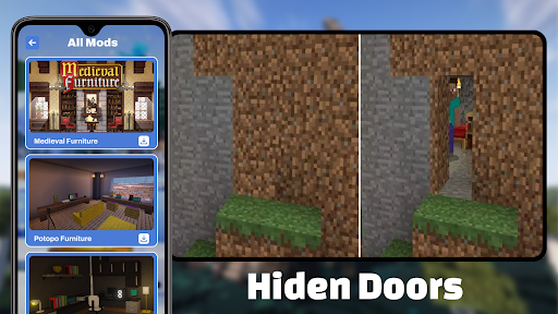 Camouflage Doors Mod for MCPE is a popular mobile app designed to enhance your experience with the Minecraft Pocket Edition (MCPE). This Android app offers players a unique way to customize their in-game environment by adding realistic camouflaged door options. Whether you're a casual gamer or a dedicated Minecraft enthusiast, the app provides a simple and effective solution to diversify your game's visual elements. As a well-crafted launcher app component, Camouflage Doors Mod seamlessly integrates with MCPE, offering an engaging and simplified way to modify your game world.